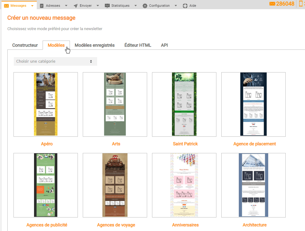 Créer le design d'une newsletter n'est pas une tâche évidente. Pour cette raison, l'outil professionnel de marketing par e-mail devrait vous proposer un Catalogue de Modèles de Newsletter qui permettront de créer des campagnes d'e-mail pour vous faire de gagner du temps, de créer des designs réactifs et adaptés à vos besoins.