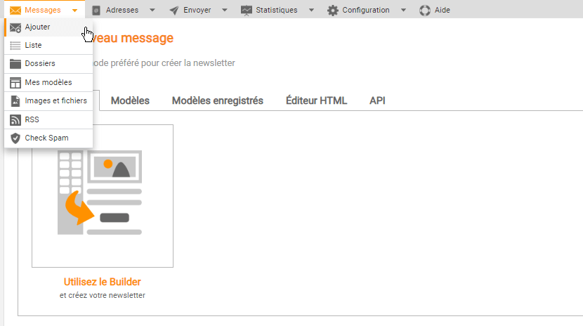 Surmontez ce détail essentiel, pour commencer à concevoir une campagne à l'aide de l'un des plus de 500 modèles de marketing par e-mail gratuits proposés par Mailpro, il vous suffit de saisir l'application, d'accéder à l'onglet Messages et de cliquer sur Ajouter.