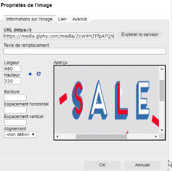 4) Il ne vous reste plus qu'à copier et coller l'URL du GIF que vous avez choisi et dans l'espace URL, vous devez copier l'URL du GIF que vous avez sélectionné.