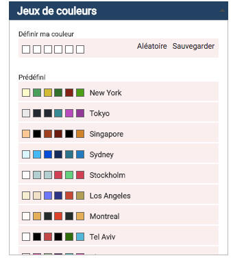 Pour personnaliser le design général de l’emailing, vous pouvez utiliser les jeux de couleurs prédéfinis ou créer le vôtre.