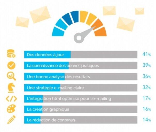 Critères de segmentation B2B[/caption] L'emailing est un canal qui d'un point de vue technique est ultra facile. Cependant, les sondés se retrouvent face à divers challenges. Si effectivement peu d'entre eux éprouvent des difficultés à la rédaction et à la création, on note qu'une majorité éprouve des difficultés face à la gestion de la data, à la mise en place des bonnes pratiques ainsi qu'à l'analyse des résultats. [caption id="attachment_21629" align="aligncenter" width="604"]